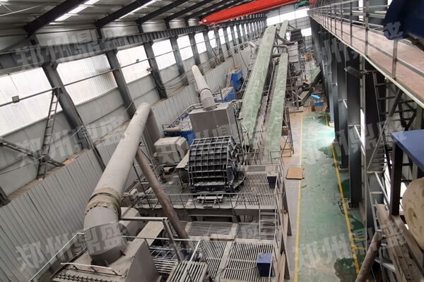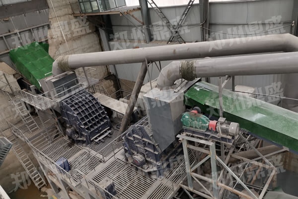 料倉內的物料進入振動篩分喂料機后,喂料機前端篦條將物料分成兩種物料<70mm和>70mm,其中<70mm經皮帶輸送機送至除土篩,經除土篩篩分出>10mm和<10mm兩種物料,其中<10mm的作為渣土經由輸送機輸送至廢渣區存儲,>10mm被送至ZPC1820錘式破碎機后篩分上料皮帶;>70mm的物料經過溜槽直接進入ZPC1820錘式破碎機進行粗碎。
