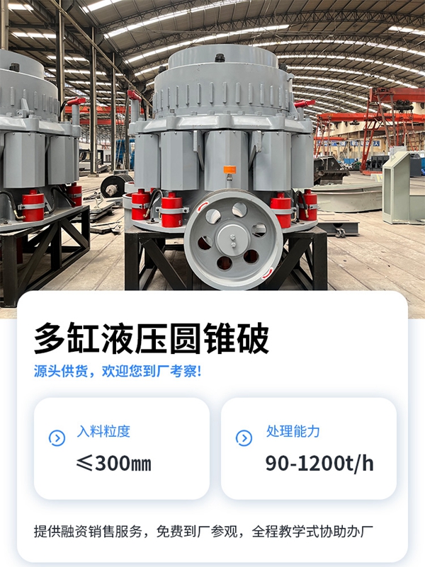 多缸液壓圓錐式破碎機的過鐵保護裝置為多組液壓缸,并與鎖緊保護裝置集成一體,安裝在上、下機器結合部。結構較為復雜,對于高硬度礦石破碎效果好。