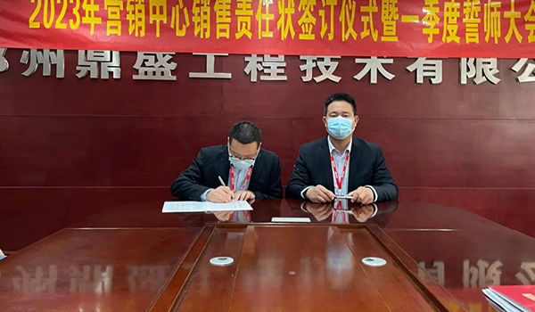 蓄力量、育希望、創(chuàng)輝煌。近日,鄭州鼎盛為確保2023年度銷售工作取得突破性進(jìn)展,再上一個(gè)新臺(tái)階。營(yíng)銷中心全體齊聚公司總部,舉行“2023年?duì)I銷中心銷售責(zé)任狀簽訂儀式暨一季度誓師大會(huì)”,公司主要領(lǐng)導(dǎo)出席儀式。