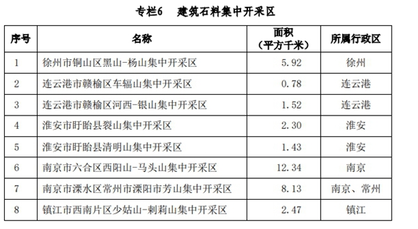 (二) 建筑石料集中開(kāi)采區(qū)在徐州、連云港、淮安、南京、鎮(zhèn)江和常州等資源有保障、 開(kāi)發(fā)有基礎(chǔ)的地區(qū)劃定 8 個(gè)建筑石料集中開(kāi)采區(qū),力爭(zhēng)形成數(shù)個(gè)年生產(chǎn)規(guī)模在 500 萬(wàn)噸以上的建筑石料開(kāi)采基地。落實(shí)國(guó)土空間規(guī)劃管控要求,鼓勵(lì)引導(dǎo)集約化、規(guī)模化開(kāi)采建筑石料。建筑石料集中開(kāi)采區(qū)內(nèi)礦山必須按照綠色礦山標(biāo)準(zhǔn)要求建設(shè)。