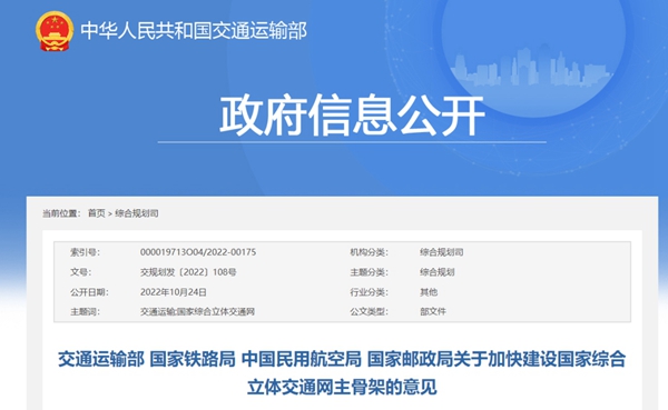交通運輸部 國家鐵路局 中國民用航空局 國家郵政局關于加快建設國家綜合立體交通網主骨架的意見