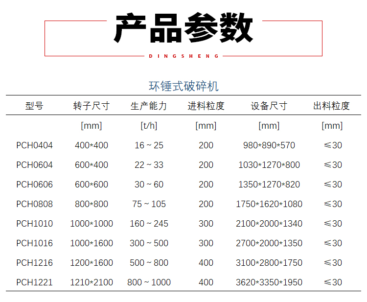 進料粒度:≤600mm